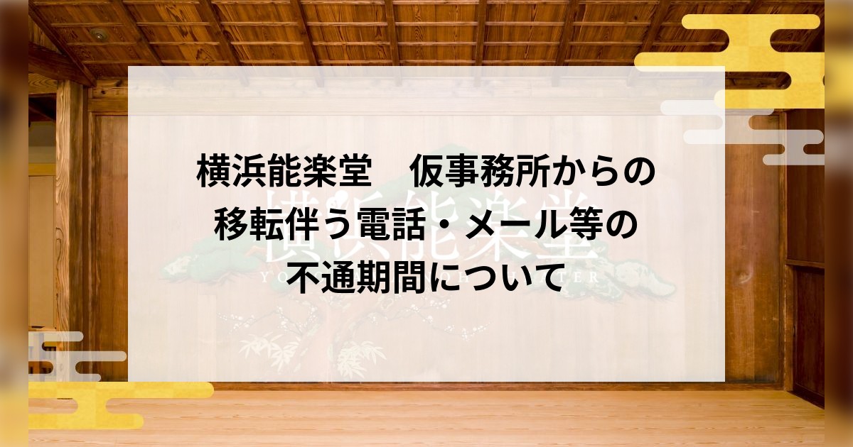 横浜能楽堂 仮事務所からの移転伴う電話・メール等の不通期間について